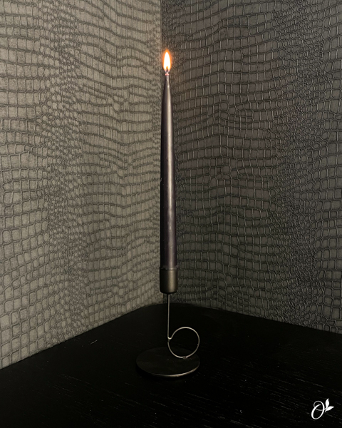 A beautiful subtle black candlestick with a playful curl. Nice to put down alone or in combination with other items.