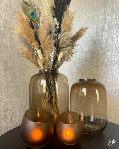 De perfecte vaas kopen die in jouw interieur past. De vaas die mooi past bij het geheel en zorgt voor eenheid en een sfeervol interieur. Dit is de kracht van stijlvolle woonaccessoires. Als de vaas mooi past in het interieur, ontstaat er rust. Deze rust zorgt ervoor dat jij je thuis voelt in jouw woning. Bij Olive Styling hebben wij een prachtige collectie vazen die jouw interieur stijlvol maakt. Vele vazen zijn mondgeblazen en dit is ook te zien aan de prachtige kwaliteit vazen. De eindeloze combinaties van vazen met bijpassende droogboeketten of kaarshouders hebben wij speciaal voor jou gecombineerd. Hierdoor ontstaat er een mooie geheel bij elkaar. Alle combinaties zijn exclusief samengesteld door Olive Styling. Dus maak jouw interieur tot een echt thuis!