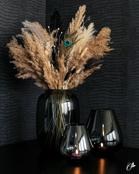 Deze vaas is goed te combineren met een droogboeket maat Medium of Large.
