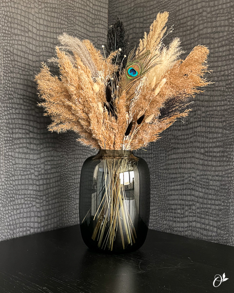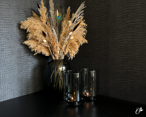 Aanrader om zwarte waxinelichten in toe te voegen. Geeft extra diepte in het windlicht. Je kunt het windlicht evt. ook als vaas gebruiken.
