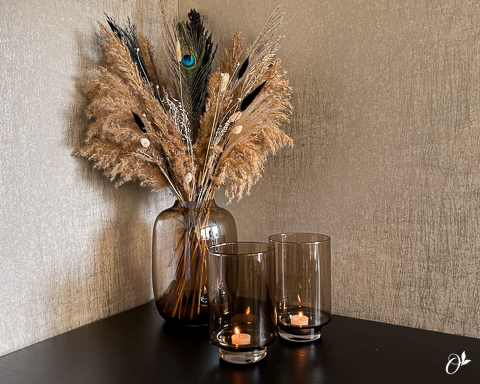 Aanrader om witte waxinelichten in toe te voegen. Geeft extra diepte in het windlicht. Je kunt het windlicht evt. ook als vaas gebruiken.